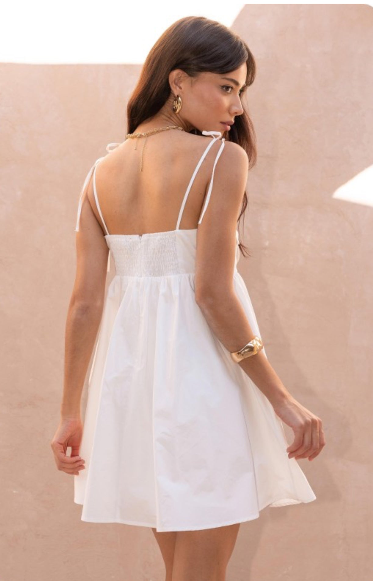 This Flower Poplin Mini Dress is a must-have for any fashion lover. Made with quilted cotton and featuring a charming flower detail, this babydoll dress is not only stylish but also practical with the added bonus of side pockets. The stretch smocking ensures a comfortable and flattering fit.